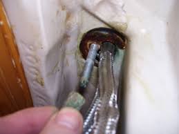 - puis, munissez-vous de la clé spéciale et dévissez l’écrou qui fixe le robinet au lavabo ;